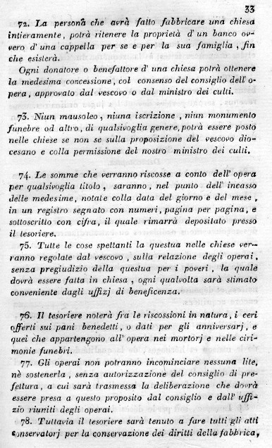 COPIA ITALIANA DEL DOCUMENTO ORIGINALE DEL DECRETO IMPERIALE CONCERNENTE LE FABBRICHE (PROMULGATO NEL "PALAZZO DELLE TUILLERIE, IL DI' 30 DICEMBRE 1810") CON CUI NAPOLEONE BONAPARTE RIORGANIZZO' AMMINISTRATIVAMENTE TUTTA LA STRUTTURA PORTANTE DELLA CHIESA CATTOLICA DEL SUO IMPERO: LA COPIA IN OGGETTO FU STAMPATA IN REDAZIONE BILINGUE (FRANCESE ED ITALIANA) DALLO STAMPATORE DI CUNEO PIETRO ROSSI NELL'ANNO 1811