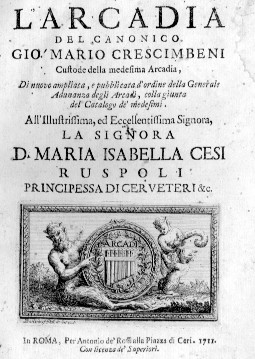 rio il 5-X- 1690. La rivoluzione letteraria rispetto al barocco e la scelta della classicità determinarono uno straordinario fenomeno panitaliano sotto la guida di letterati come Crescimbeni e Gravina.
