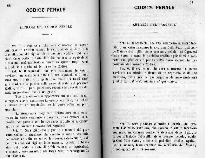 1-REVISIONE ARTICOLI 5 - 6 - 7: CRIMINI DI REGNICOLI (SUDDITI) E DI STRANIERI (TESTI POSTI A CONFRONTO)