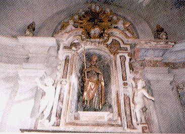UN ELEMENTO ASSOLUTAMENTE PECULIARE DI QUESTA CAPPELLA, APPARTENENTE ALLA CONFRATERNITA DEI PENITENTI BIANCHI, E' COLLEGATO AL FATTO CHE L'EDIFICIO UTILIZZA LA NAVATA LATERALE DELLA CHIESA PARROCCHIALE COME SUA BASE. LA CAPPELLA, COME HANNO EVIDENZIATO GLI ESPERTI (P.45) DA CUI SI SON DERIVATI QUESTI SPUNTI CRITICI (E L'IMMAGINE DELL'ALTAR MAGGIORE SOPRA PROPOSTA) FU QUINDI EDIFICATA SOPRA LA PARROCCHIALE IN MANIERA DA ANDARE A COSTITUIRE UNA SORTA DI UNICO EDIFICIO. LA PARTICOLARITA' DELLA SOLUZIONE ARCHITETTONICA RISULTO' SVILUPPATA IN RELAZIONE CON LA PARTICOLARITA' DELL'IMPIANTO URBANISTICO MEDIEVALE DEL BORGO: L'EMBRICATURA DEI DUE MONUMENTI GENERA COSI' UNA COMPOSIZIONE STRUTTURATA SECONDO UN ASSE VERTICALE CHE, PIU' O MENO DIRETTAMENTE, RIMANDA A QUELLA DINAMICA, PRIMA FISICA E PER ASSOCIAZIONE DI IDEE IMMEDIATAMENTE SPIRITUALE, CHE GUIDA ALLA TENSIONE METAFISICA PER L'ELEVAZIONE DI OGNI ANIMA