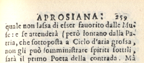 L'espressione riguarda Paolo Agostino Orengo giudicato una promessa a patto di lasciare la città di Ventimiglia ove i Poeti non fanno numero (da pag. 258, riga XIII dal basso) secondo un giudizio abbastanza crudo di Aprosio