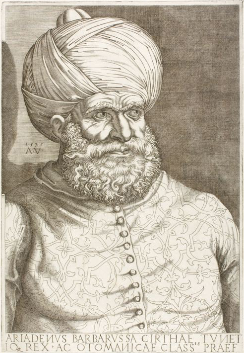 Khayr al-Din Barbarossa (qui in un ritratto del XV secolo ) detto in ambiente italico Ariadeno Barbarossa, conosciuto anche come Haradin, Kaireddin e Cair Heddin, (Mitilene, 1466 circa – Istanbul, 1546), è stato un corsaro e ammiraglio ottomano, Dey di Algeri e di Tlemcen, nonché ammiraglio della flotta ottomana.
