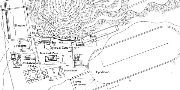 Nell'ambito degli antichi Giochi olimpici e dei Giochi Panellenici, si svolgevano sia corse di carri trainati da quattro cavalli (tethrippon) che da due (synoris) che, a parte il numero degli animali, si svolgevano nello stesso modo. Le corse furono aggiunte al programma delle gare nel 680 a.C. La corsa era preceduta da una processione che entrava nell'Ippodromo, mentre un araldo annunciava a tutti i nomi degli aurighi e dei proprietari delle squadre. L'ippodromo di Olimpia (di cui sopra è proposta la pianta con quella del restante complesso degli agoni) era lungo circa 550 metri e largo la metà: vi potevano gareggiare fino a 60 carri contemporaneamente (probabilmente nella realtà il loro numero era assai minore). Si trovava ai piedi di una collina nei pressi di un ampio fiume, e poteva ospitare fino a 10.000 spettatori in piedi. Il tethrippon consisteva di dodici giri dell'ippodromo, alle cui estremità si dovevano affrontare due curve piuttosto strette. Si utilizzavano diversi strumenti di tipo meccanico, tra cui i cancelletti di partenza ( hysplex ) che venivano abbassati per dare inizio alla gara. Secondo Pausania erano stati inventati dall'architetto Kleoitas e funzionavano in modo tale che i carri posizionati all'esterno partivano prima di quelli dal lato interno. La gara non poteva in effetti dirsi veramente iniziata finché non si apriva l'ultimo cancelletto e, a quel punto, i carri si trovavano tutti più o meno allineati, anche se quelli partiti dal lato esterno avevano una velocità iniziale maggiore degli altri. Venivano poi alzati altri meccanismi chiamati l'aquila e il delfino per dichiarare la corsa iniziata e poi venivano man mano abbassati per indicare il numero di giri rimasti da percorrere. Si trattava probabilmente di sculture di bronzo che rappresentavano i due animali sistemate nei pressi della linea di partenza.