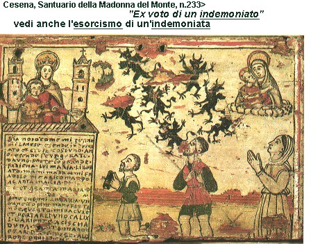La casistica di POSSEDUTI/INDEMONIATI riguardava perņ sempre -nell' epocale INTERPRETAZIONE ANTIFEMMISTA- maggiormente quello che era considerato il SESSO DEBOLE CIOE' LA DONNA (e qui si puņ vedere l'ANTICO ESORCISMO DI UNA POSSEDUTA) sia in dipendenza di una CONFORMAZIONE FISICA RITENUTA MENO ROBUSTA DI QUELLA DELL'UOMO E PIU' ESPOSTA A CONTRARRE MALATTIE E CONTAGI NON SOLO FISICI quanto di una particolare INSTABILITA' CARATTERIALE che avrebbero facilitato l'accesso sin ad una sorta di ZONA CAVA oggi si direbbe "ZONA MORTA", da cui si sarebbero potute espandere varie forme di