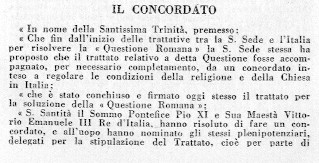 IL DOCUMENTO DEL CONCORDATO FRA PAPATO E STATO ITALIANO DELL'11-02-1929 TRATTI DAL PERIODICO "LETTURA ITALIANA" - MARZO APRILE, VII, 1929: "CLICCA QUI" PER VOLTARE PAGINA