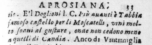 DEL DOGLIONI E DELL'OPERA IN CUI SI CELEBRA POI IL MOSCATELLO DI TAGGIA VEDI QUI A P. 30 DELLA BIBLIOTECA APROSIANA P. 30, RIGA 10 DAL BASSO (LE VOCI EVIDENZIATE IN ROSSO SONO ATTIVE) = QUINDI IN QUALCHE MODO GLI CONTRAPPONE, AD ELOGIO DEL MOSCATELLO DI VENTIMIGLIA, "DAVIDE FROELICHIO" DI CUI NELLA STESSA OPERA ANGELICO PARLA A P. 31 INIZIANDO DALL'ULTIMA RIGA (LE VOCI EVIDENZIATE IN ROSSO SONO ATTIVE)