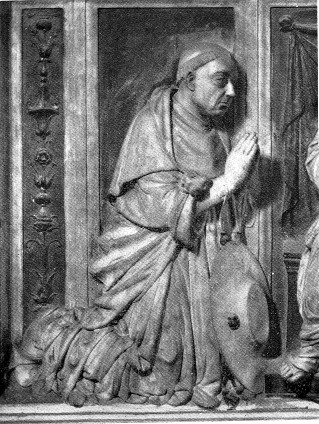 IL CARDINALE NICOLO' DA CUSA [IL CUSANO] IN UNA SCULTURA DI ANDREA BREGNO SUL SUO MONUMENTO SEPOLCRALE IN S. PIETRO IN VINCOLI A ROMA