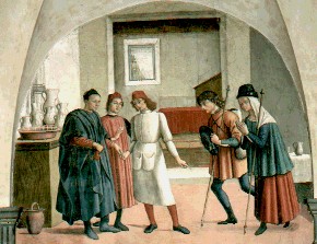 immagine tratta da "OPERE DI MISERICORDIA CORPORALE: ALLOGGIARE I PELLEGRINI": AFFRESCO DI DOMENICO GHIRLANDAIO (FIRENZE, S. MARTINO DEI BUONOMINI)