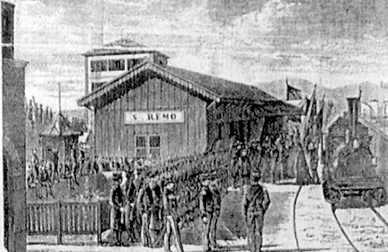 ANNO 1874: L'ARRIVO DELLA ZARINA DI TUTTE LE RUSSIE ALLA STAZIONE FERROVIARIA DI SANREMO: IMMAGINE PUBBLICATA SULL'"ILLUSTRAZIONE ITALIANA" ANNO 1874