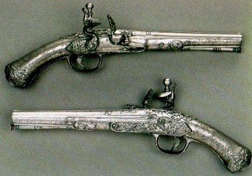 PISTOLE CORTE, PROD. ITALIA SETTENTRIONALE, 1670 CIRCA: NELLE CINQUECENTESCHE RIFORME AGLI STATUTI CRIMINALI GENOVESI DEL XVI SECOLO [AL CAPITOLO N.36 ("PISTOLE CORTE") ED AL CAPITOLO N.37 ("ARCHIBUGI LUNGHI": QUINDI DI PRECISIONE E TALI DA GARANTIRE L'AGGUATO)] ED ANCORA POI NEL TESTO DELLE RIFORME DEL 1605 SI INTERVENNE AVVERSO LE ARMI CHE POTESSERO VENIR CELATE FRA GLI ABITI ONDE SORPRENDERE SUBDOLAMENTE GLI AVVERSARI E SOPRATTUTTO I VIANDANTI PER STRADA COME ANCHE CONTRO QUEI FUCILI ED ARCHIBUGI CHE RENDESSERO POSSIBILE NASCONDERSI DIETRO QUALCHE RIPARO ED UCCIDERE I PASSEGGERI ONDE DEPREDARLI