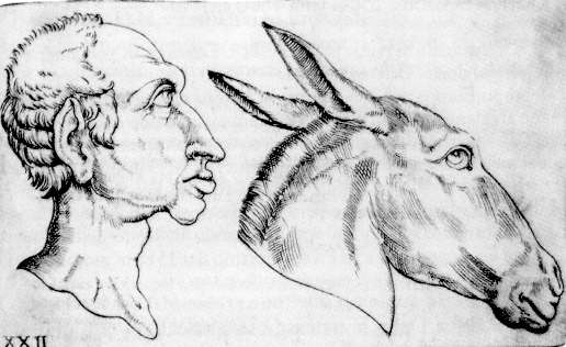 MAGIA NATURALE ed in particolare coi contributi di GIOVANNI BATTISTA DELLA PORTA che, in una sua fondamentale opera (Della fisionomia dell'huomo libri sei..., Napoli, per G. Carlino e C. Vitale, 1610), propose una serie di interessanti INCISIONI, adeguatamente commentate, miranti a riprodurre la più svariata tipologia dei volti umani, tali da farli, seppur artificiosamente, somigliare ai profili di animali, in maniera di potersi riferire a questi per le note qualificanti del soggetto esaminato sotto la specie del profilo psichico.