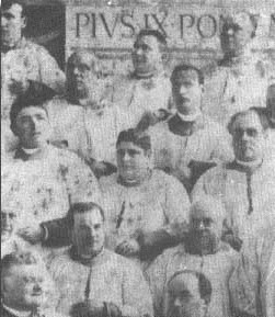 Al centro della fotografia, datata 4 marzo 1898, si vede ALESSANDRO MORESCHI (1858 - 1922), soprano evirato della Cappella Sistina che, oltre a quello con cui fu poi universalmente noto di ULTIMO DEI CASTRATI, meritò anche l'appellativo di ANGELO DI ROMA, registrò nel 1902-3 circa dieci dischi G&T. Tali incisioni sono state riportate nel CD The last castrato, assai diffuso negli USA. Recentemente il 'Crucifixus' della Petite Messe Solennelle di Rossini (in origine G&T 54764 aut 54773) è stato inserito nella 'compilation' EMI Classics NS01 L'epoca dei castrati. Tutte le incisioni effettuate da Moreschi sono contenute nel CD della Fonit Cetra Alessandro Moreschi, Le registrazioni integrali - coll. Le grandi voci Italiane, vol.9, CDO 519 (1997).