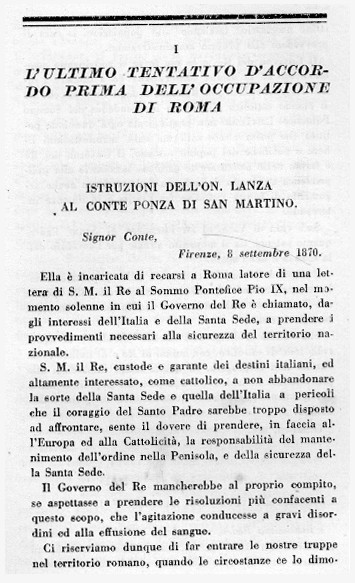 DOCUMENTI DIPLOMATICI SULLA SOPPRESSIONE DELLO STATO PONTIFICIO E SULLA SUA ANNESSIONE ALL'ITALIA: "CLICCA QUI" PER VOLTARE PAGINA