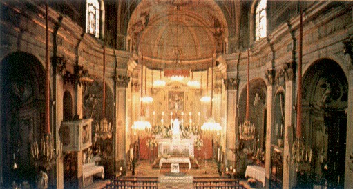 INTERNO DELLA CHIESA PARROCCHIALE IN STILE TARDO BAROCCO LIGURE DI S. BIAGIO CONDEDICATA AI SANTI FABIANO E SEBASTIANO