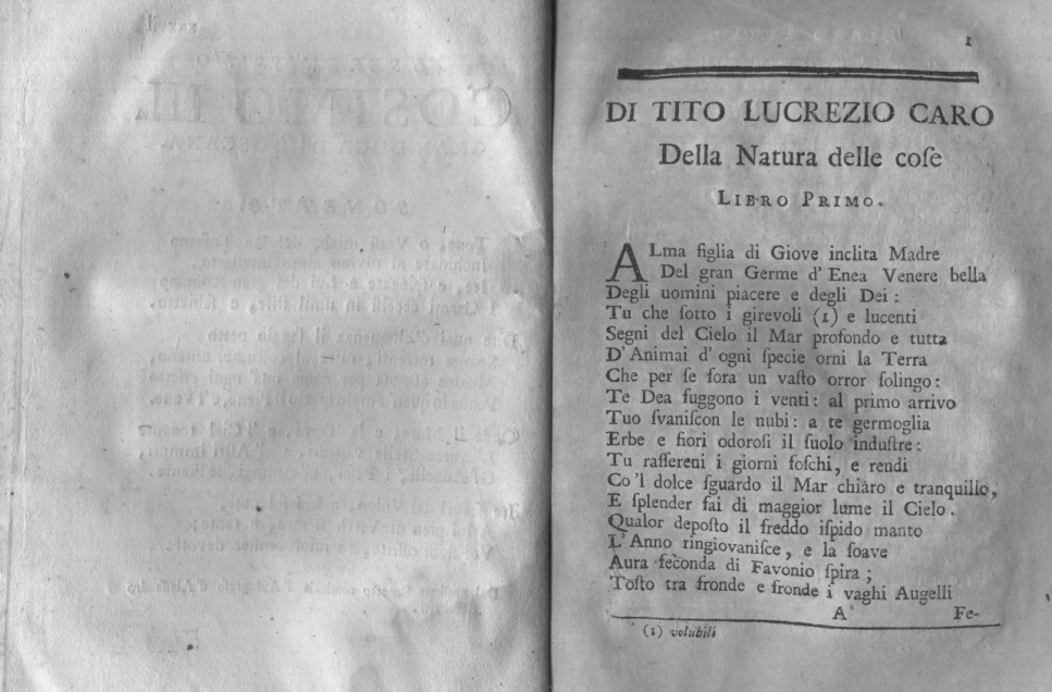 CLICCA QUI PER RITORNARE AL TEMA DI DISCUSSIONE SU "DIOCESI DI FRONTIERA" E LIBRI PROBITI OPPURE SE VUOI RITORNARE ALLA DISCUSSIONE SU A. MARCHETTI E SULLA SUA "TRADUZIONE DEL DE RERUM NATURA" CLICCA QUI