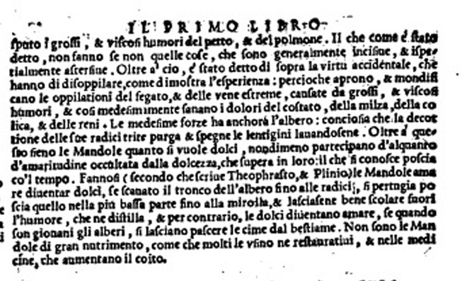 Testo di riferimento = Il Dioscoride dell'eccellente Dottor Medico M. P. Andrea Matthioli da Siena, co i suoi discorsi da esso la seconda volta illustrati e
