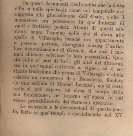 CONTRADE FURONO DEVASTATE DAI SARACENI NEL IX SECOLO SI' DA INDURRE IL VESCOVO GENOVESE TEODOLFO AD INCORAGGIARE INSEDIAMENTO DI COLONI NEI TERRITORI DELLA CHIESA: coloni (vedi qui le dipendenze rurali rette da coloni di Villaregia: vale a dire TERZORIO E CIPRESSA -POI DESTINATI CON LA CRISI DI VILLAREGIA AD ENTRARE, COME SI EVINCE DAGLI STATUTI DEL XV SECOLO, NELLA PODESTERIA POI CONSOLATO DI SANTO STEFANO - OBBLIGHI DUECENTESCHI VERSO IL CENOBIO) che attraverso i secoli andarono a realizzare sulla ispirazione del sistema grangitico il complessi dei TERRAZZAMENTI O FASCE CON I MURI A SECCO TALORA VOLGRIZZATI IN MACIERI = contestualmente essi appresero a valersi delle strutture tecnologiche dei monaci elaborando quella CIVILTA' RUSTICA che qui si vede VARIAMENTE ELABORATA NELL'INSIEME DEGLI ASPETTI ANCHE TECNOLOGICI